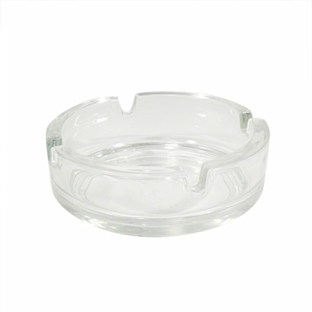 Stylish Transparent Ashtray Features 4 notches at the rim Size: D110mm x H37mm Resistant glass material Heat resistant and fireproof