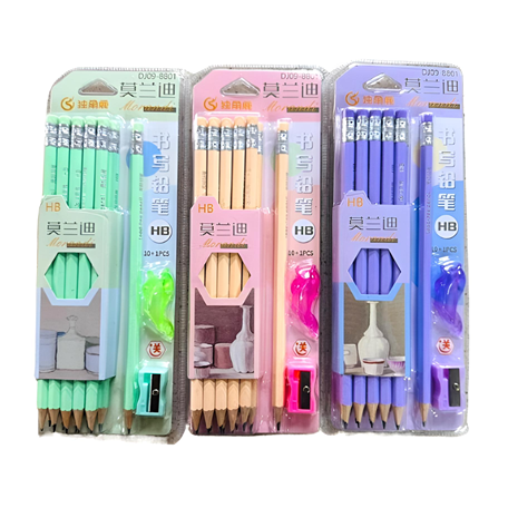 Wooden Pencil Set Ref DJ09-8801 HB PK10+1 with sharpener MeliMelo quantity